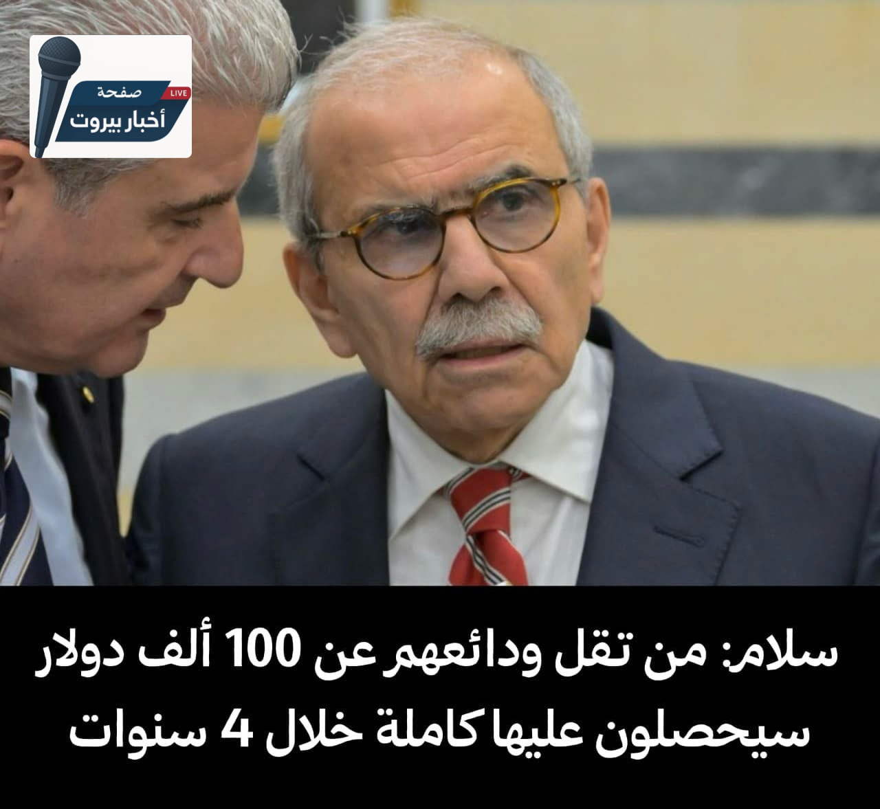 ⁨ سلام: أنجزنا مشروع قانون لانتظام الوضع المالي واسترداد الودائع-من تقلّ ودائعهم عن 100 ألف دولار سيحصلون عليها كاملة خلال 4 سنوات-المودعون المتوسطون والكبار سيحصلون على 100,000 دولار، تماما كصغار المودعين وعلى سندات قابلة للتداول بقيمة رصيد وديعتهم دون أي اقتطاع من أصلها🇱🇧⁩
