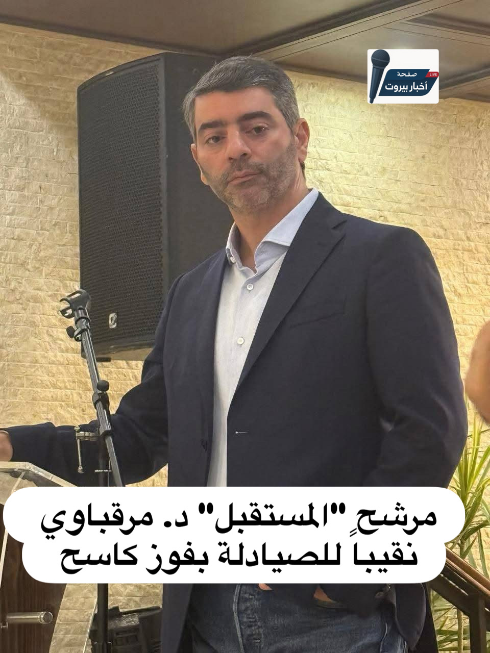 فاز مرشح “تيار المستقبل” د. عبد الرحمن مرقباوي، بمركز نقيب الصيادلة في لبنان، على رأس لائحة “نقابة ٢٠٢٨” المدعومة من تحالف “تيار المستقبل” و”القوات اللبنانية” ومستقلين، والتي حققت فوزاّ كاسحاً (١٢ – صفر) في الانتخابات التي جرت اليوم🇱🇧⁩